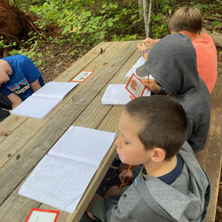In math, learners mastered number formation as we learned how to write numbers! Through rhymes, practice, and dedication the Superstars are independently writing numbers on their own. Skip counting by 10's has been an active and fun way to count to 100! Superstars clap, skip and hop as they skip count from 10-100. Hopscotch has also been a fun way to visualize and move our bodies as we learn these new numbers. Number Lines help us see number order while we put flashcards in number order. While learning how to nature journal, learners have shown amazing progress in copywork with metadata.